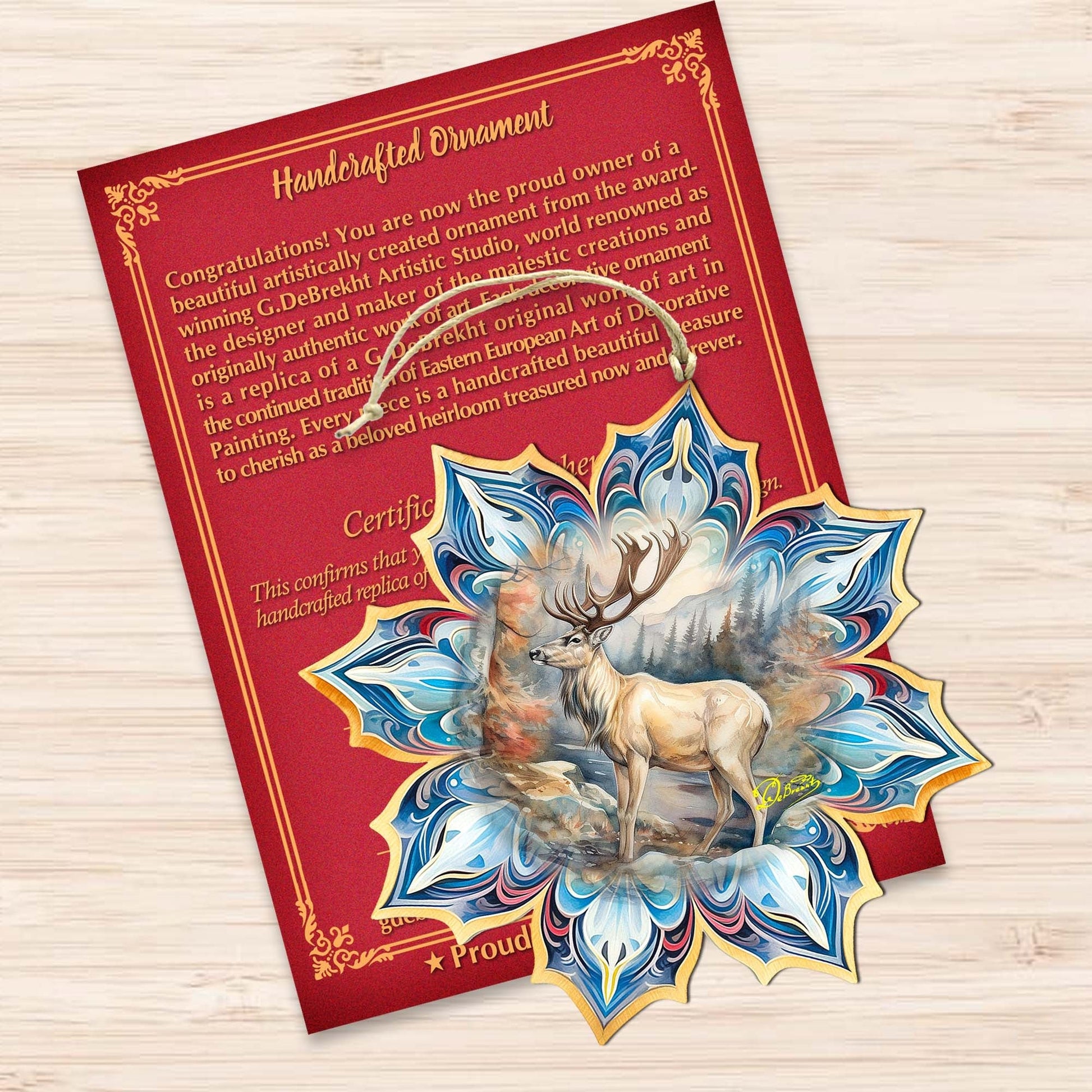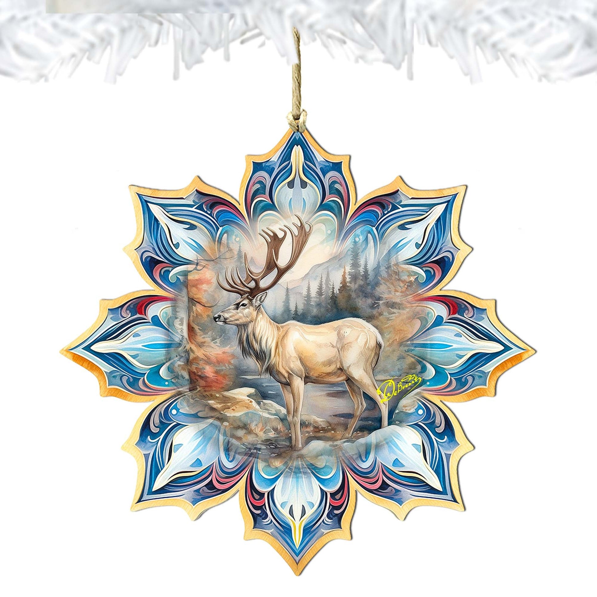 Reindeer Snowflake Wooden Ornaments by G. Debrekht - Nature Wildlife Decor - 8688415