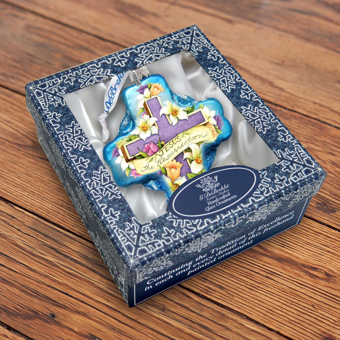 Resurrection Cross Glass Ornament by Susan Winget - Nativity Holiday Decor - 758-303-SW