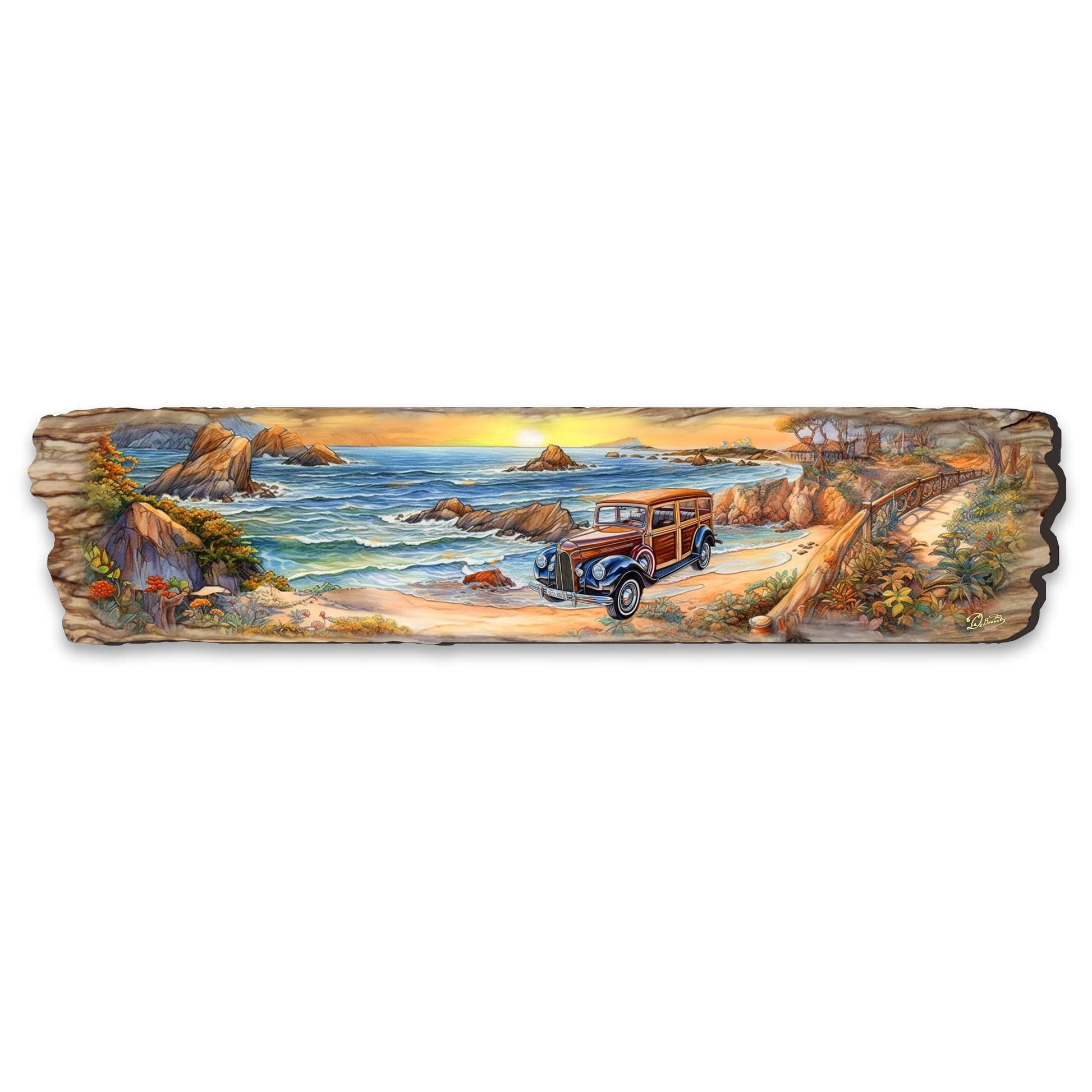 Retro Car on Beach Wooden Wall Art by G. DeBrekht Coastal Decor - 8491114W
