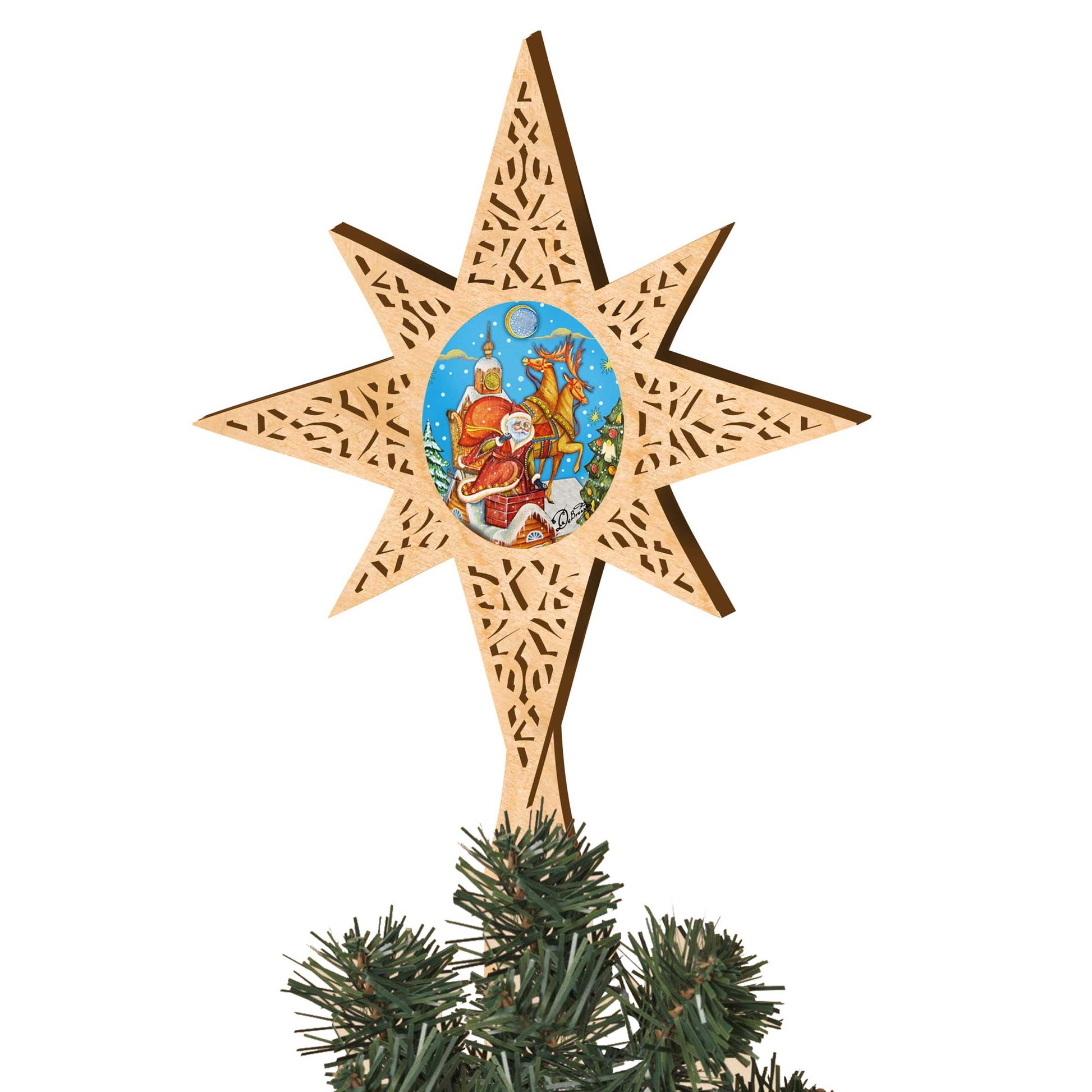 This Rooftop Santa is an instant heirloom. Our handcrafted wooden tree toppers will take the place of honor on your holiday tree. Skilled artisans handcraft them and centerpieces, instantly becoming a focal point of your Christmas Tree. Shop now at G. Debrekht