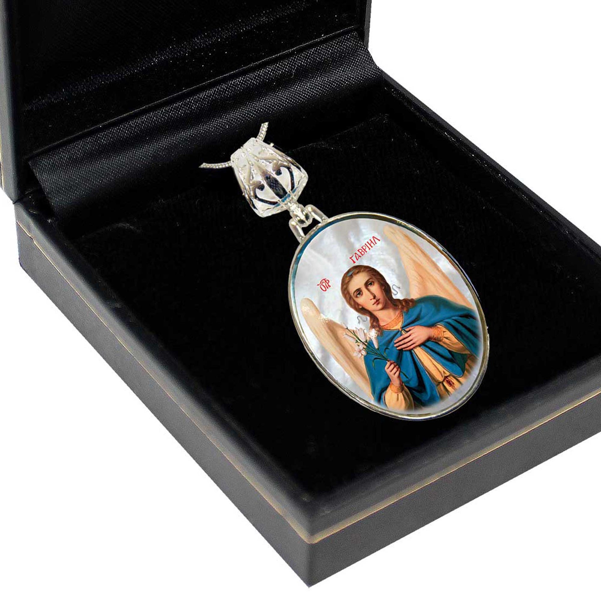 Saint Gabriel the Archangel Silver Plated Mother of Pearl Necklace - 43040