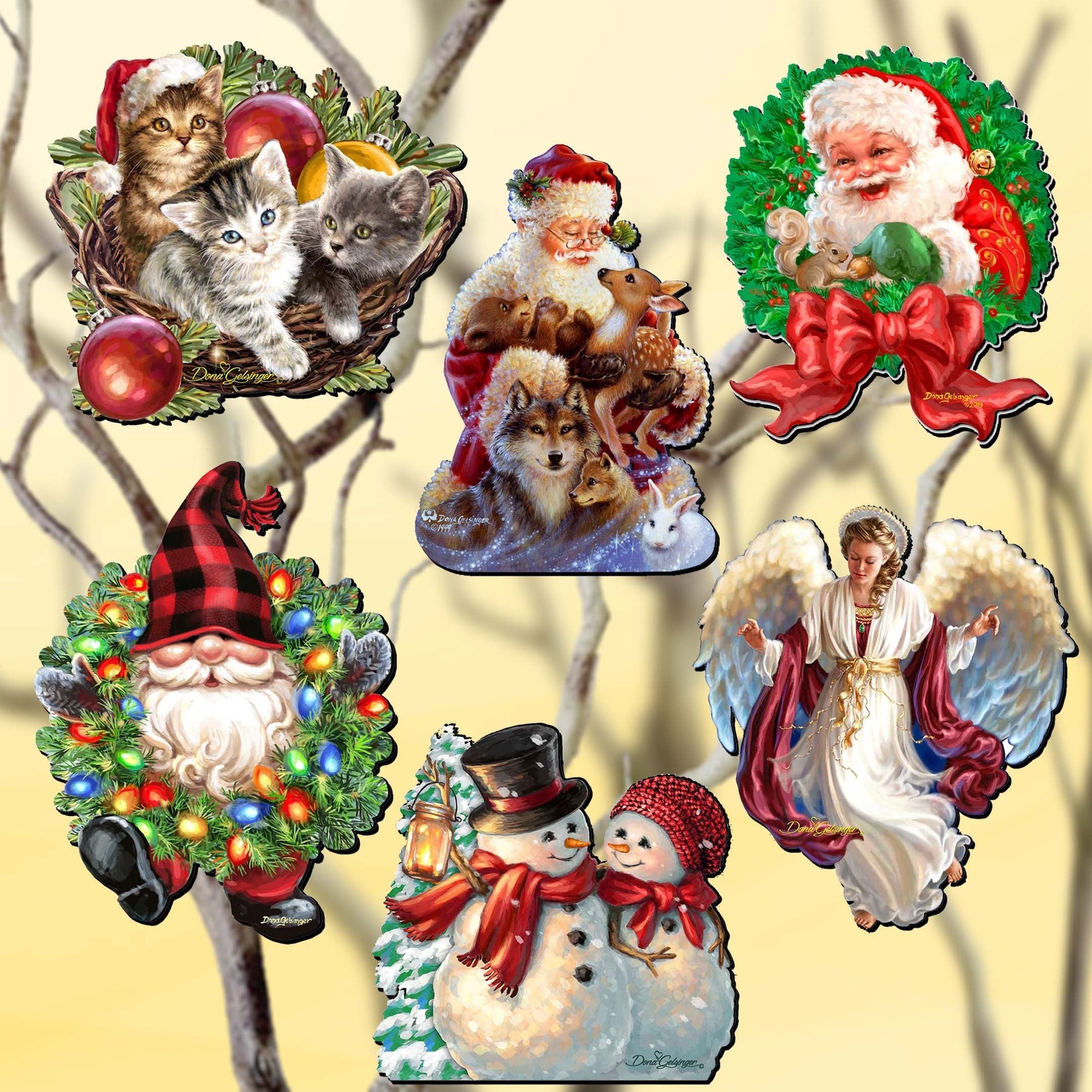 Santa and Friends Decorative Wooden Clip-on Ornaments Set of 6 by D. Gelsinger - Christmas Decor - 8090134C-S6