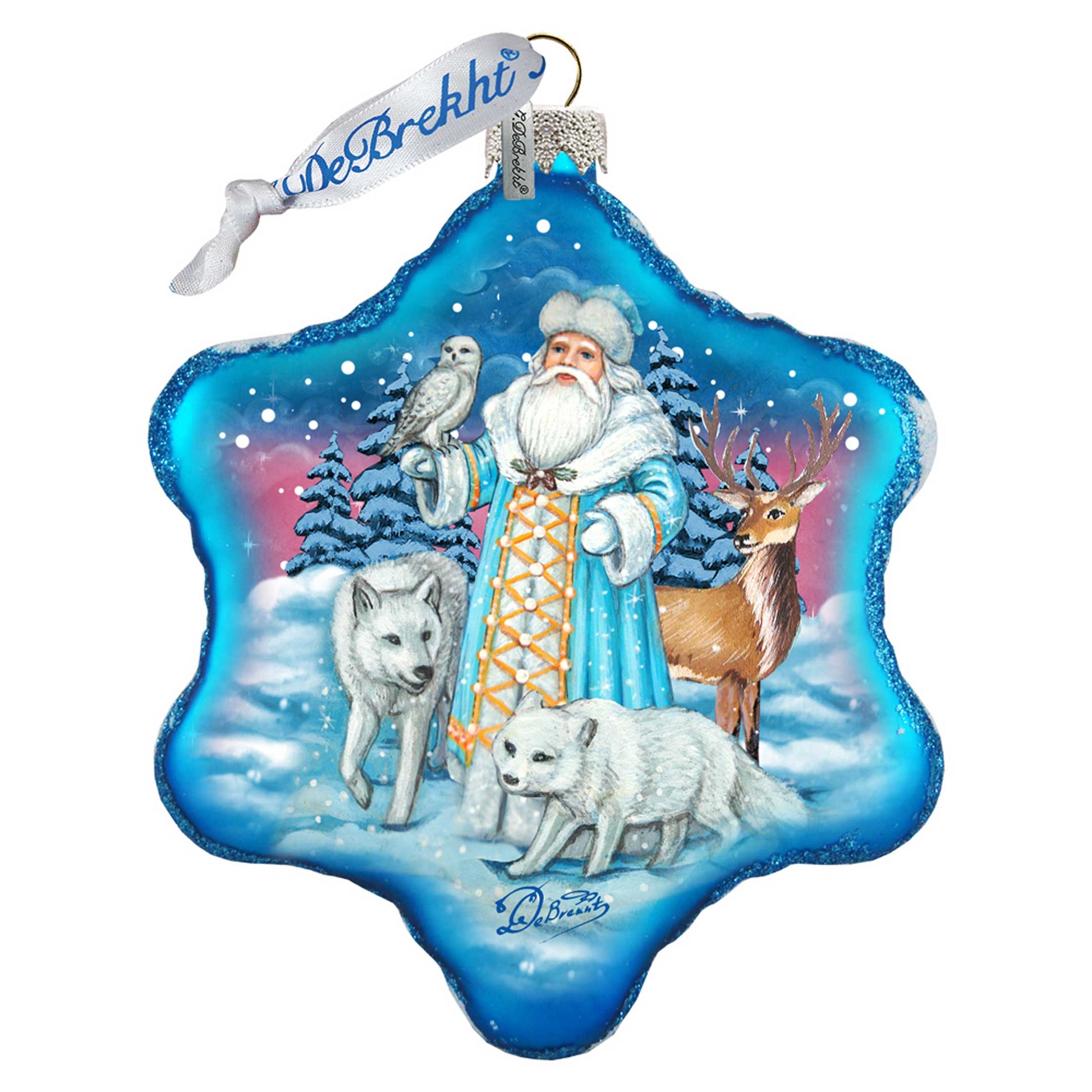 Santa Arctic Story Snowflake Glass Ornament by G. DeBrekht - Christmas Santa Snowman Decor - 754-011B