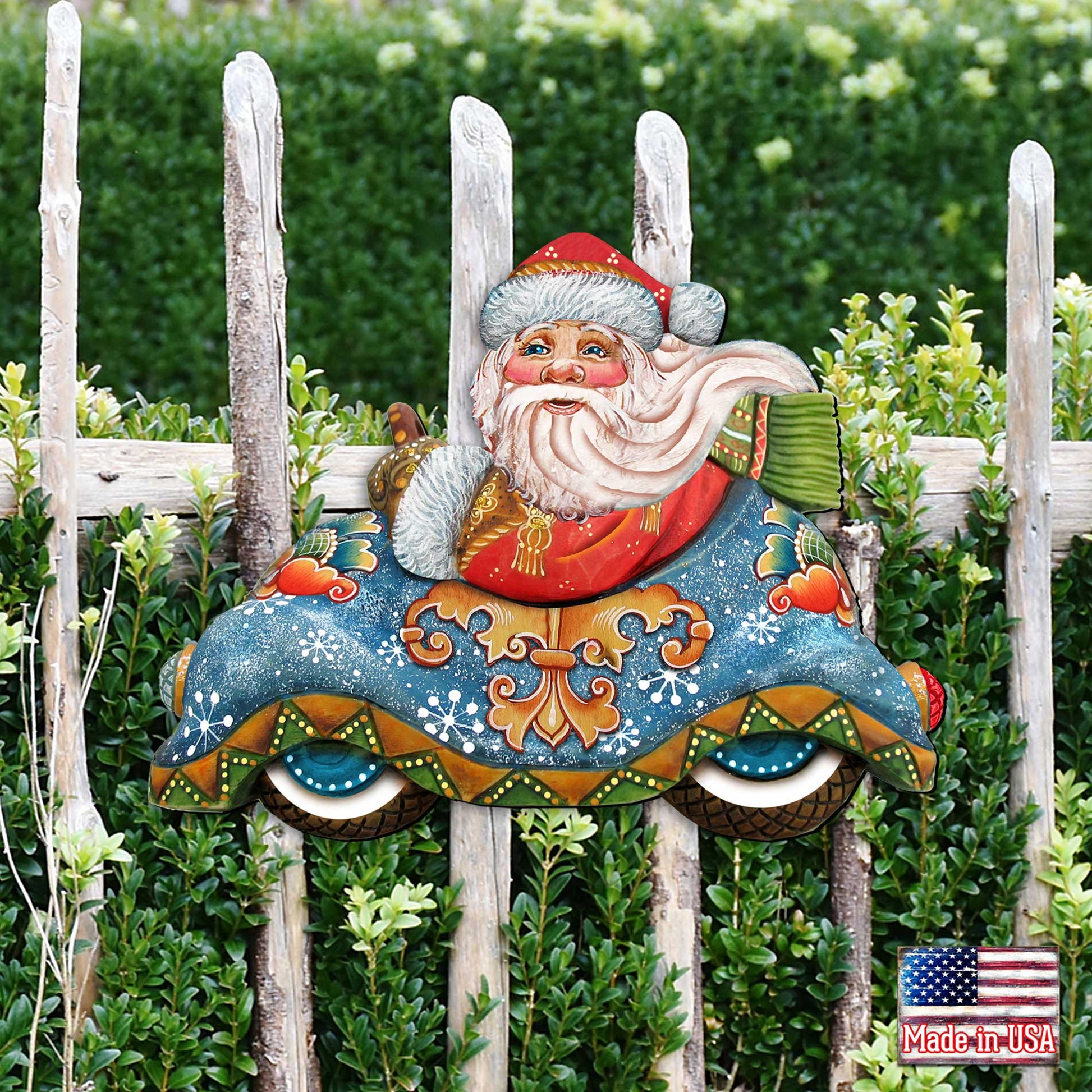 Looking for a great and unique door art idea? This Santa Car wooden Christmas Decor idea is inspired by the well-renowned art of G. DeBrekht. Shop Today to support G. Debrekht, which produces 100% made-in-the-USA products!