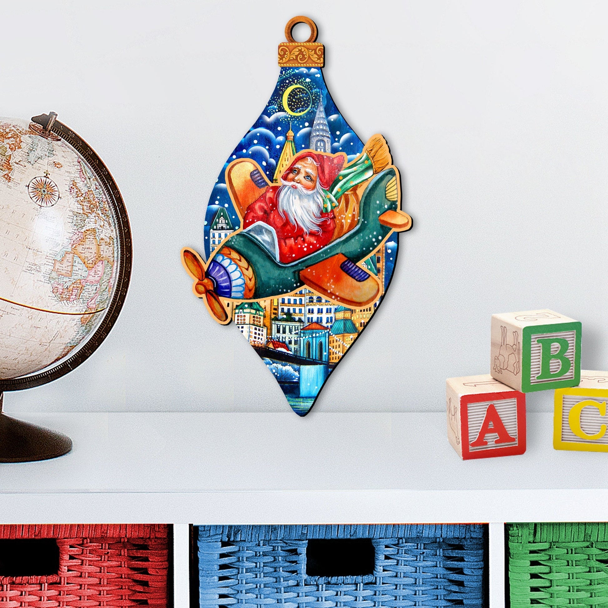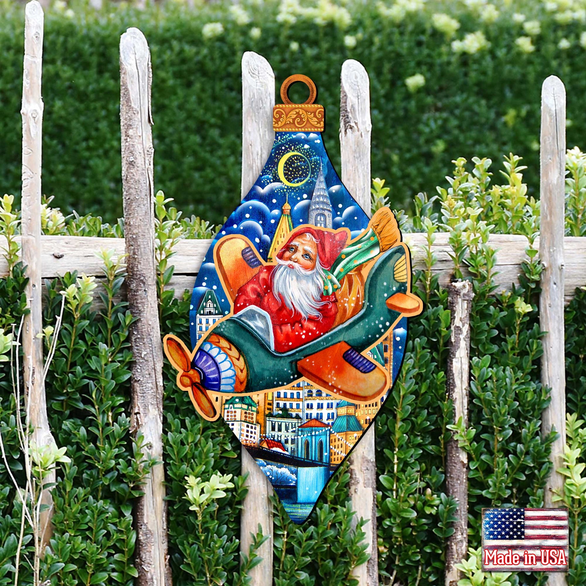 Santa On an Airplane Christmas Door Decor by G. DeBrekht - Christmas Santa Snowman Decor - 8112170H