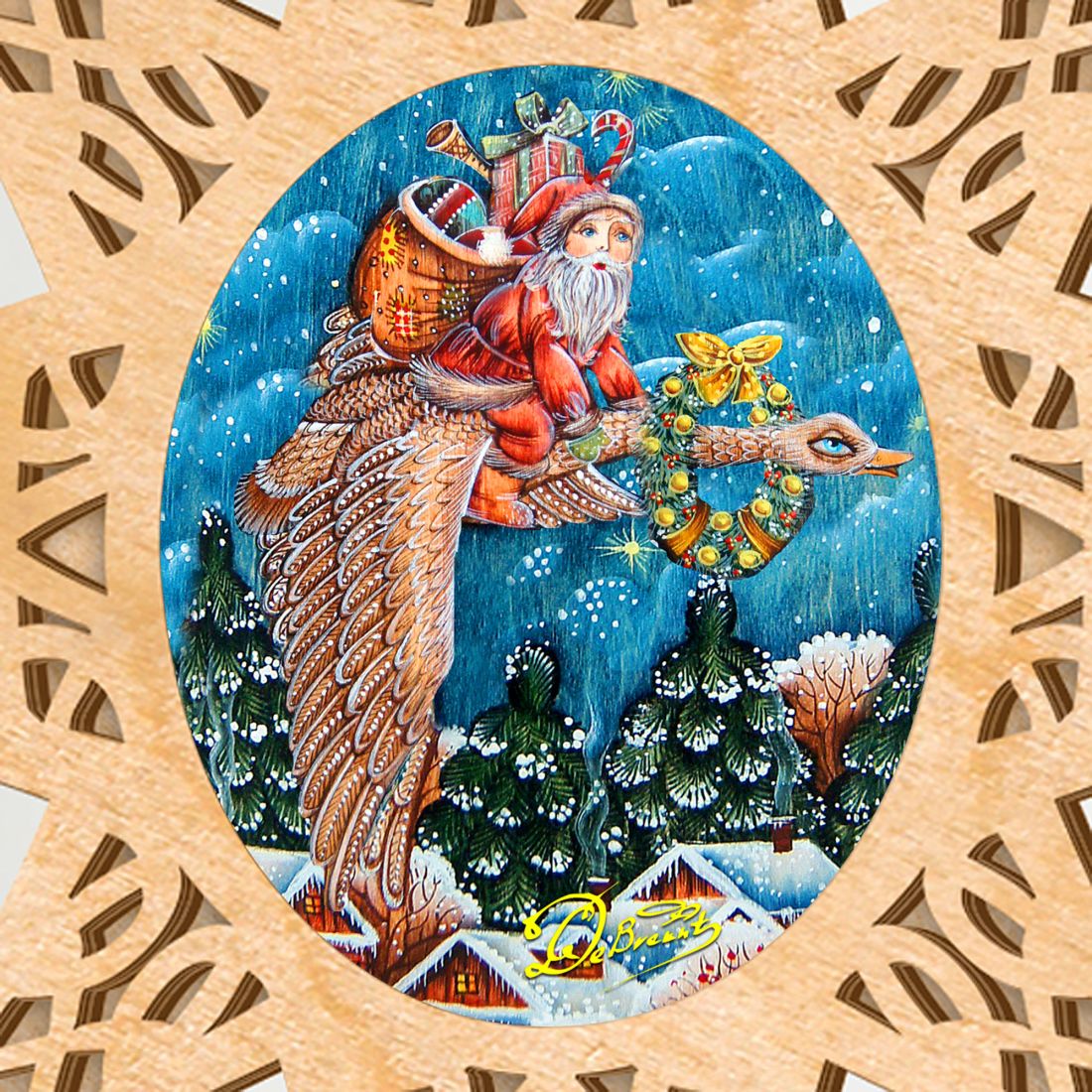 Santa On Goose Tree Topper by G.DeBrekht - Christmas Santa Snowman Decor - 89492