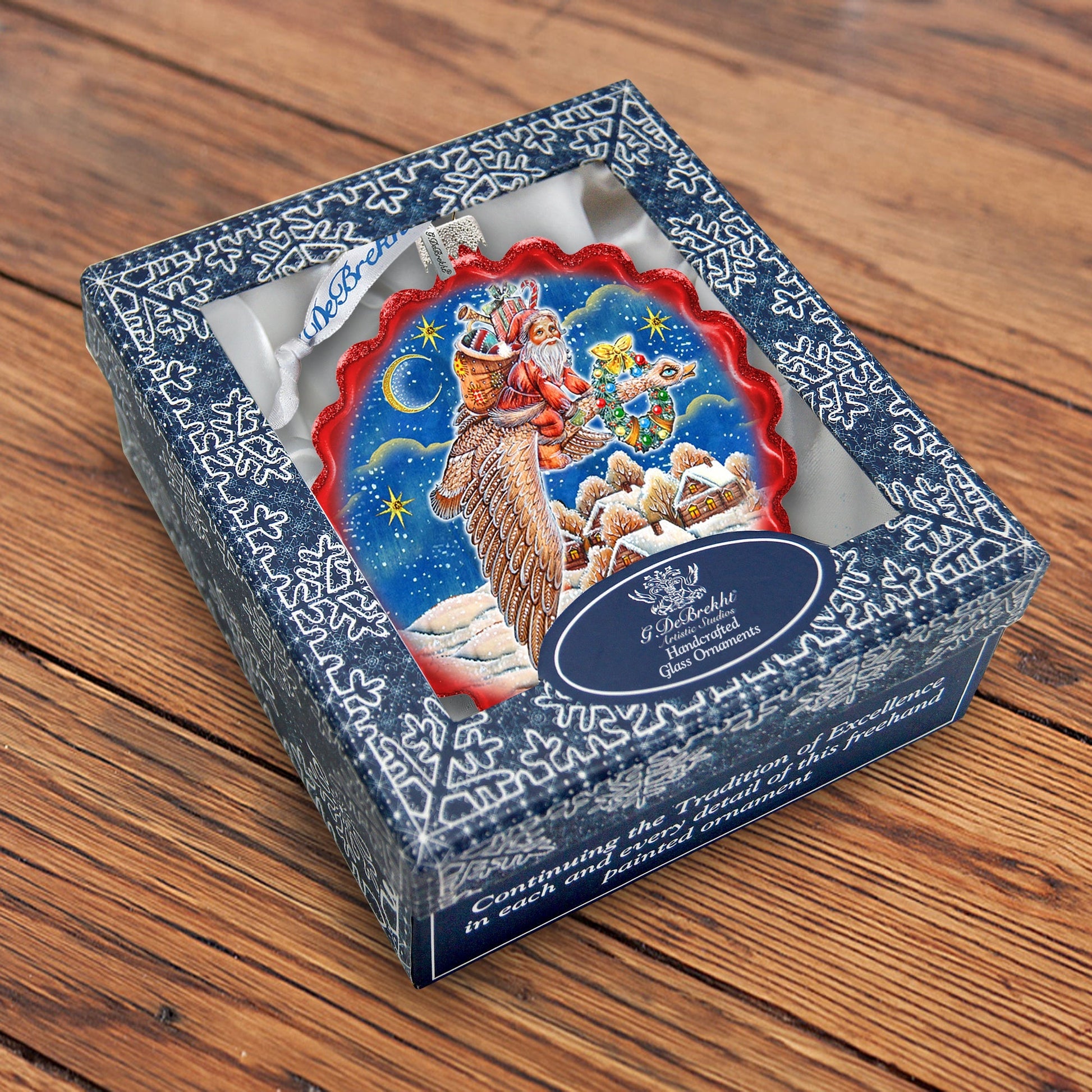 Santa on Goose Wreath Glass Ornament by G. DeBrekht - Christmas Santa Snowman Decor - 759-036
