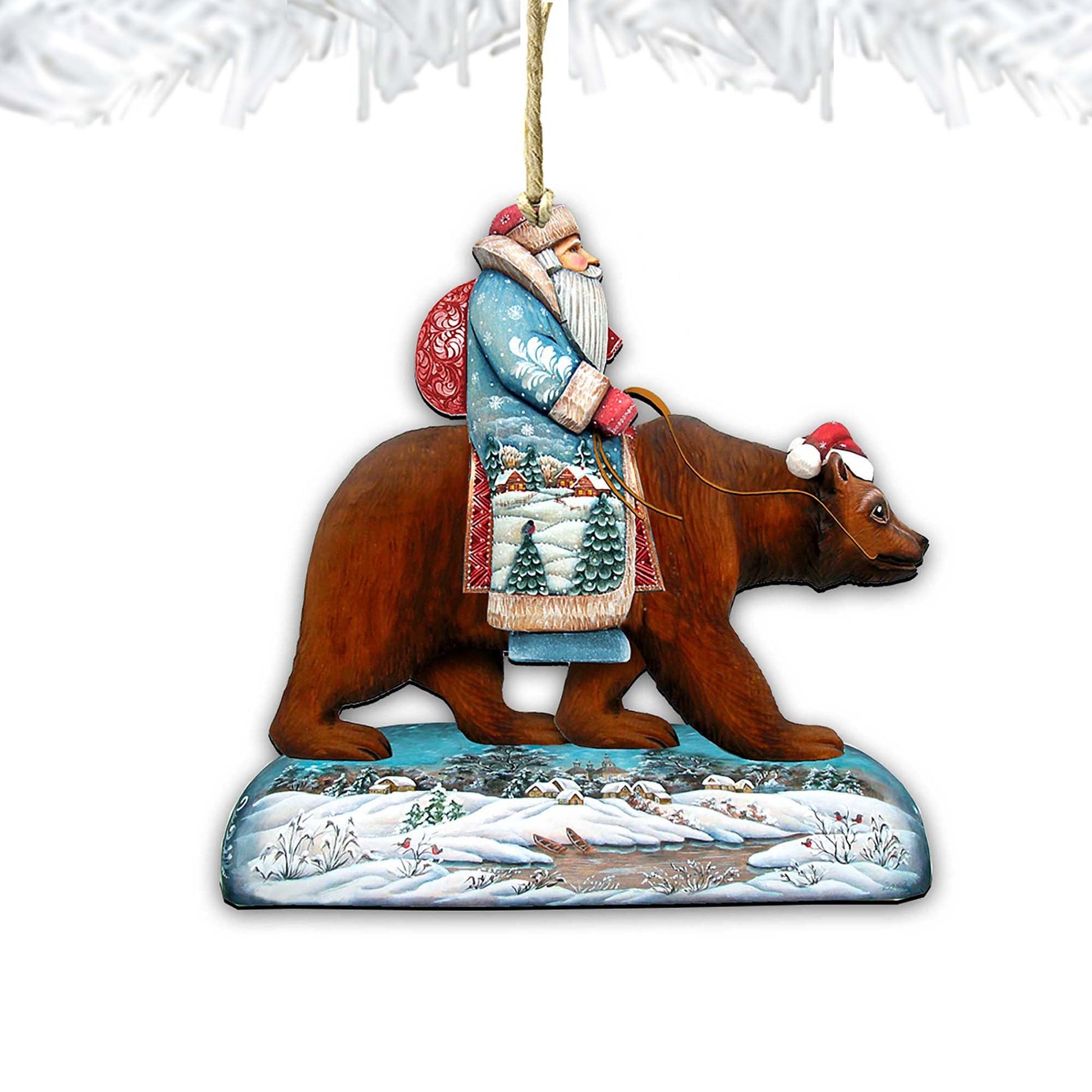 Santa On Grizzly Bear Ornament by G. DeBrekht - Christmas: Santa Snowman Decor - 8151128