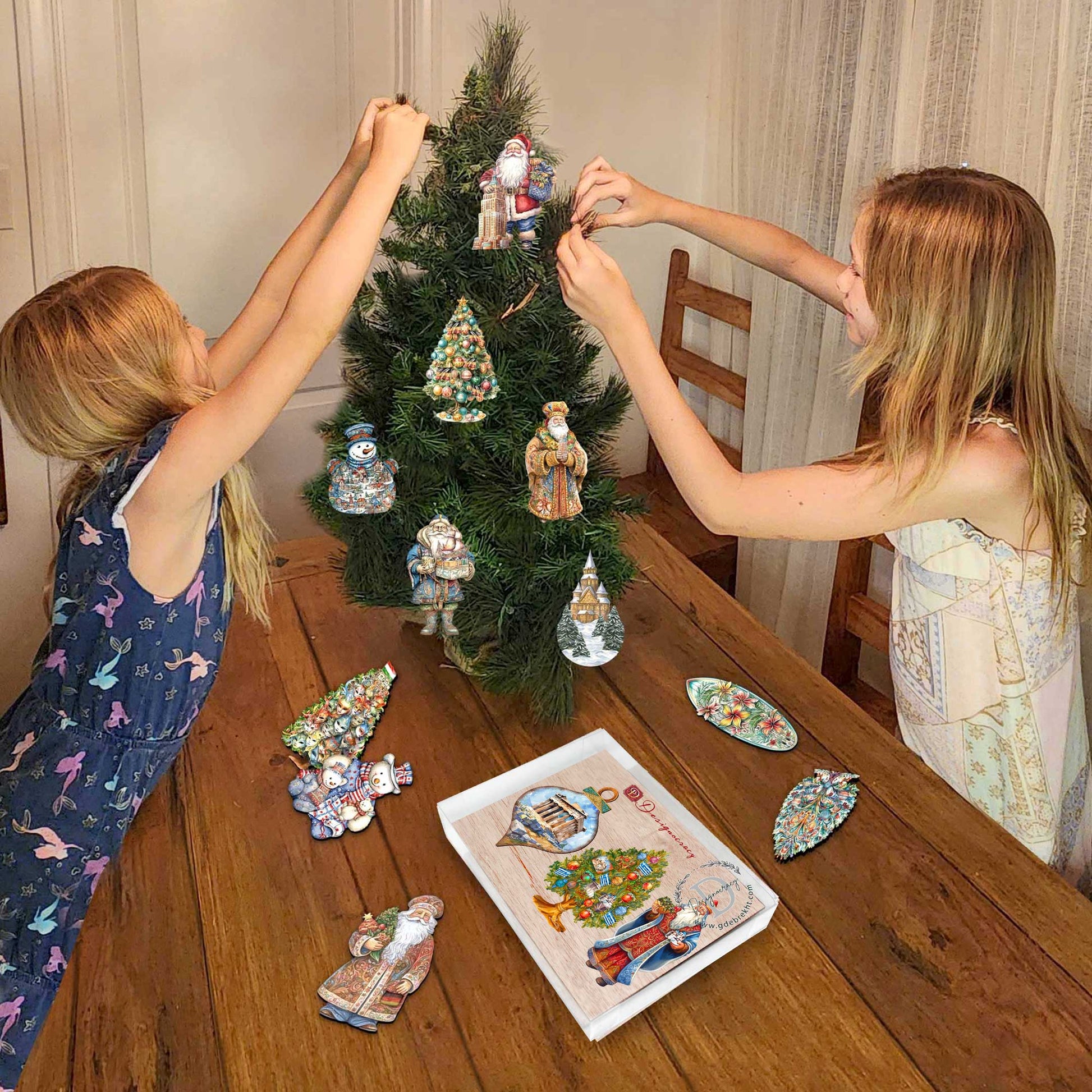 Discover G. Debrekht's whimsical Santas Around the World Ornaments Collection, featuring the heartwarming Santas Around the World" theme.