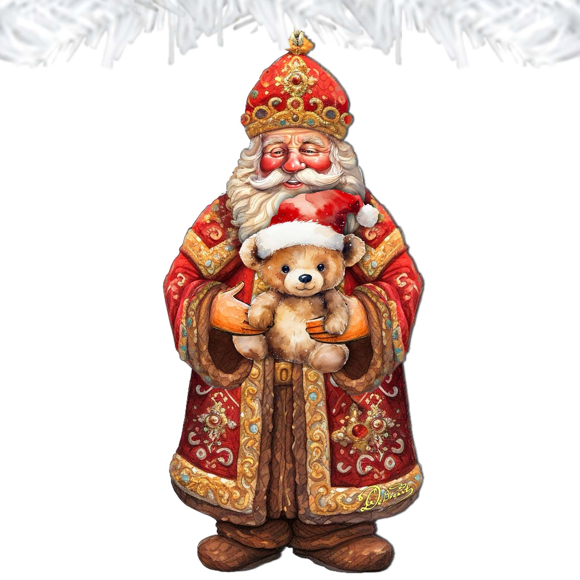 Santa's Teddy Bear Hug Wooden Ornaments by G. Debrekht - Christmas Santa Snowman Decor - 8691415