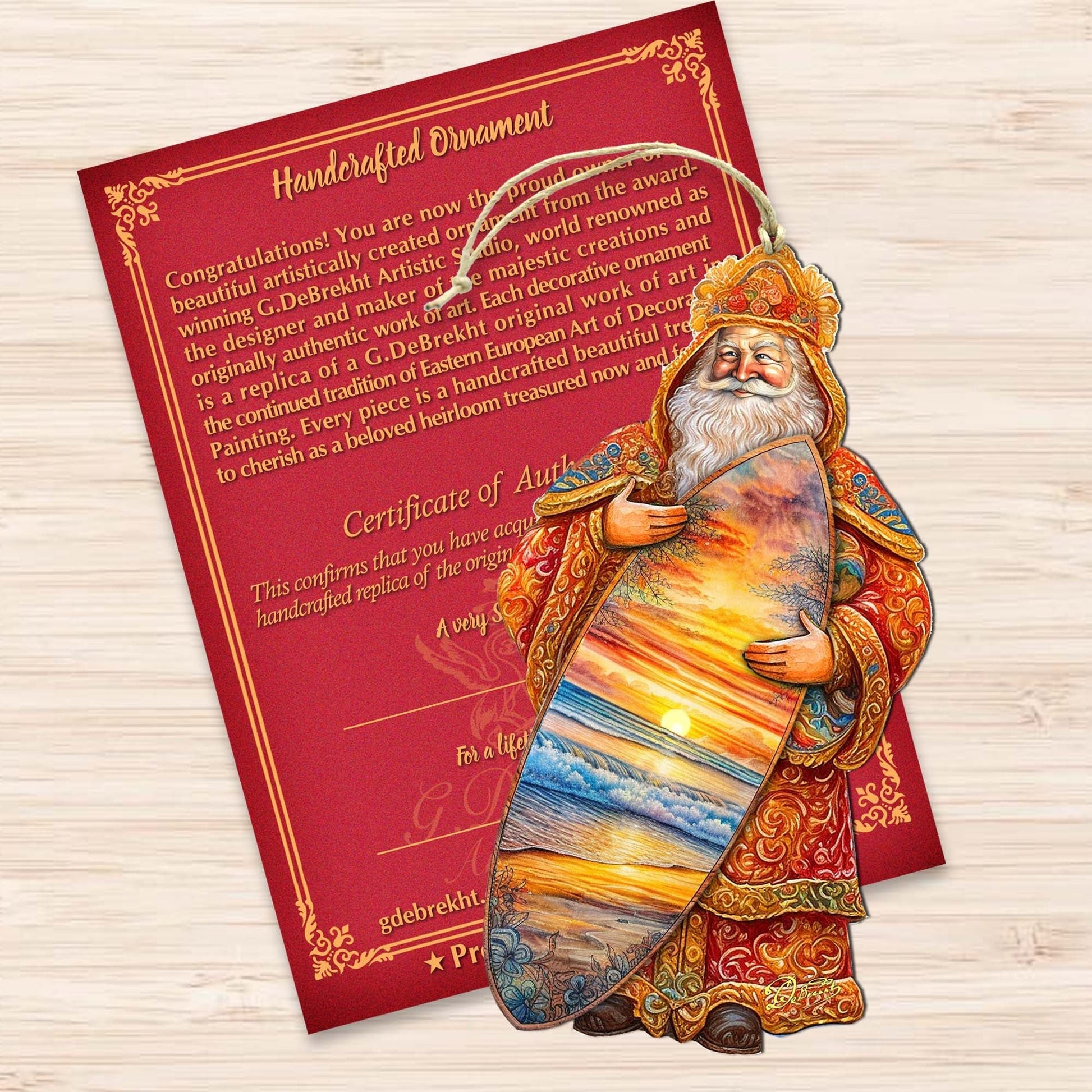 Santa's Tropical Surf Ride Wooden Ornaments by G. Debrekht - Christmas Santa Snowman Decor - 8691413