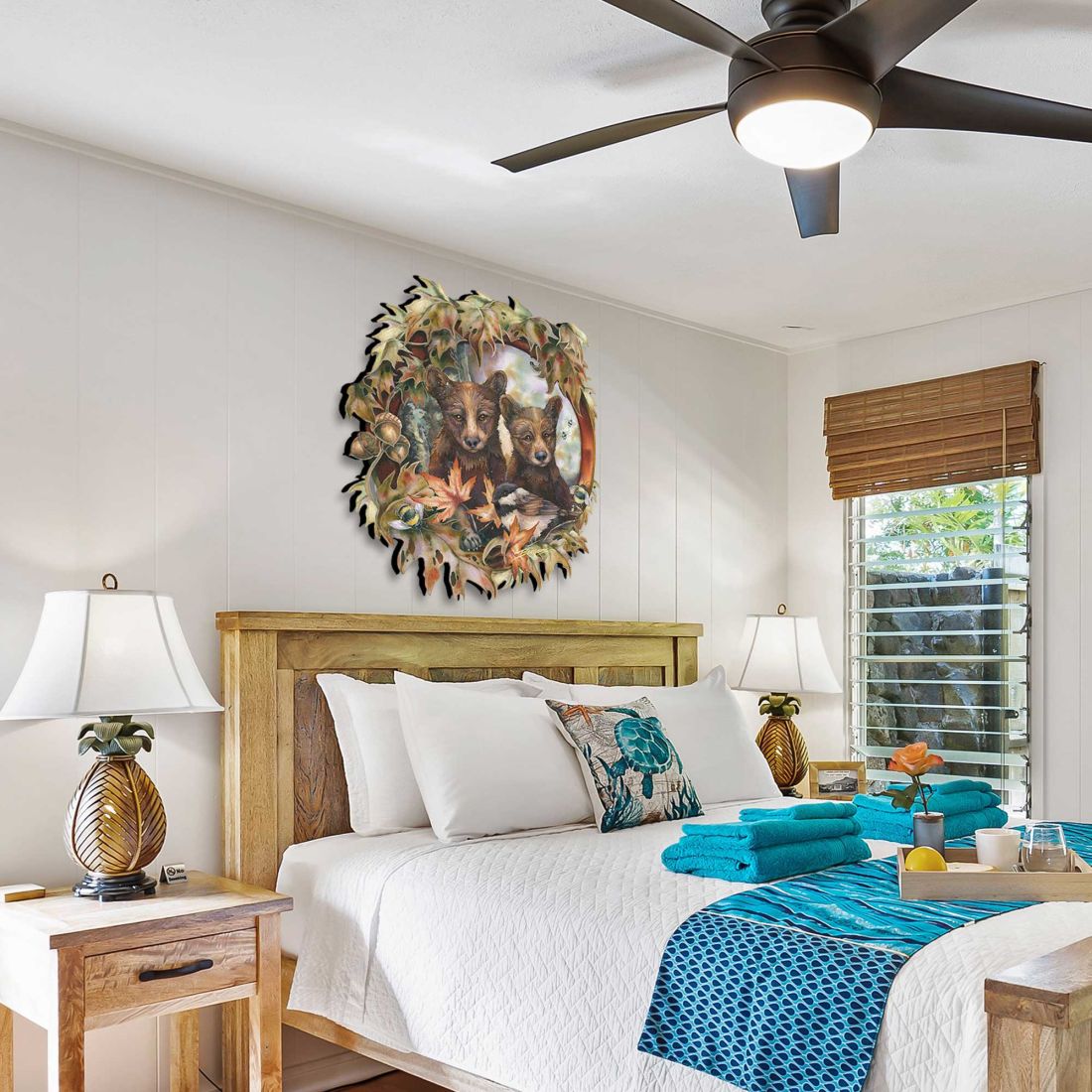 Simple Joys Black Bear Cubs with Bees Wall Art by J. Bergsma - Wildlife Holiday Decor - 8591850W-JB