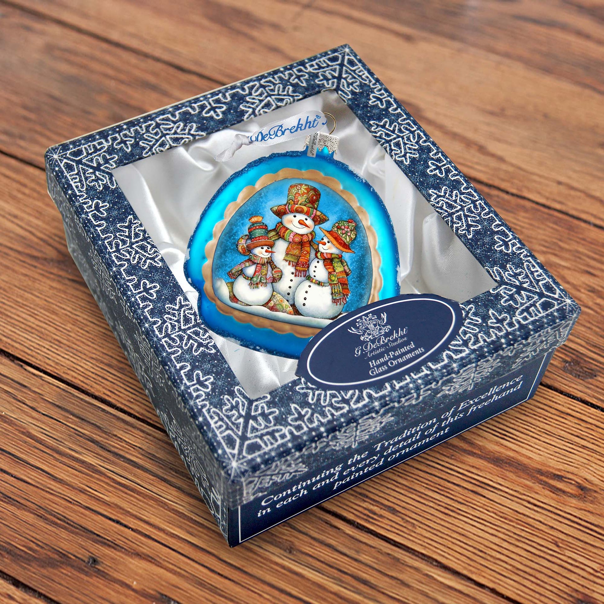 This G. Debrekht Snowman Family Rainbow Glass Ornament is the perfect addition to any Christmas Decor. It features a detailed, hand-painted snowman family with vibrant colors that bring the entire piece to life. It's sure to bring cheer to your holiday season!