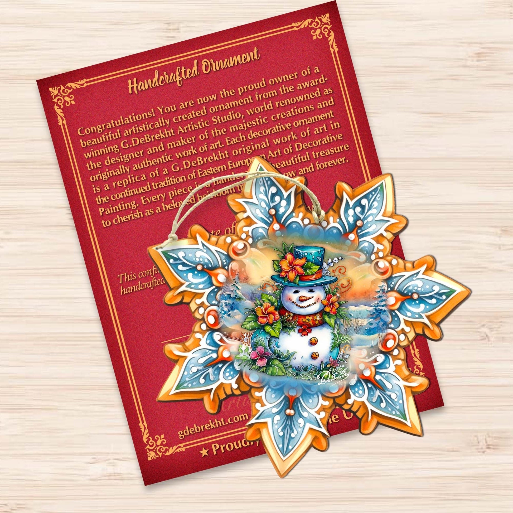 Snowman Snowflake Wooden Ornaments by G. Debrekht - Christmas Santa Snowman Decor - 8688425