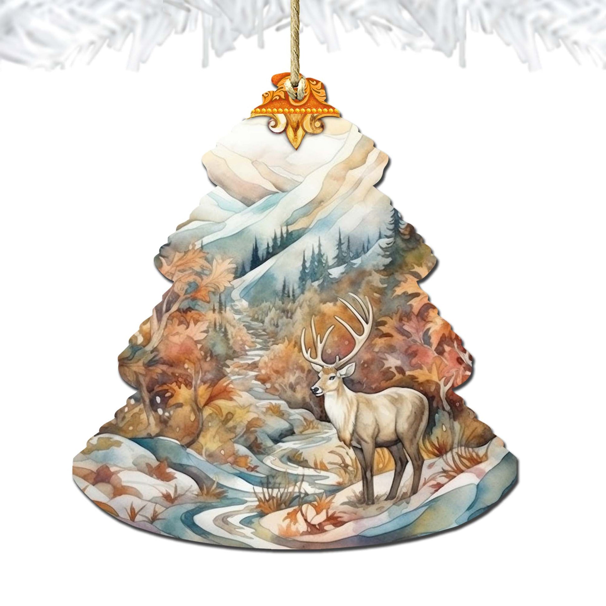 Snowy Summit Elk Tree Wooden Ornaments by G.Debrekht - Wildlife Holiday Decor - 870005