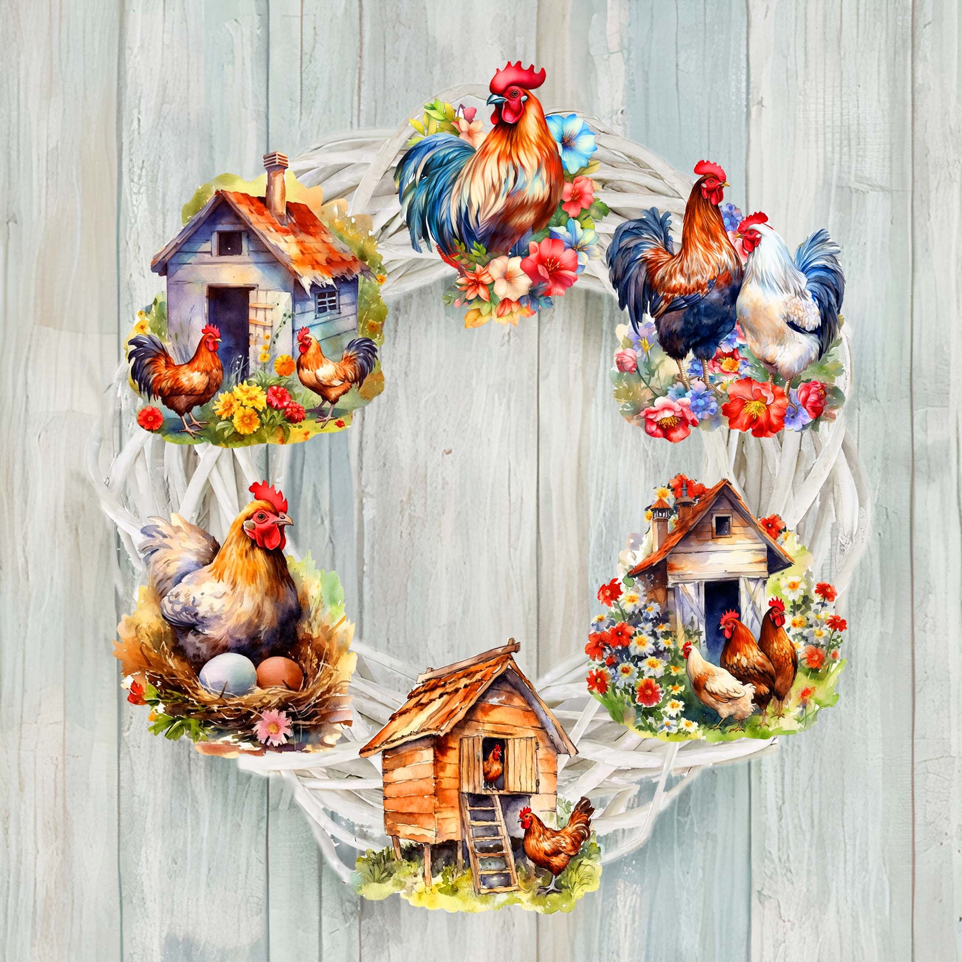 Spring on the Farm Decorative Wooden Clip-on Ornaments Set of 6 by G. Debrekht - Easter Decor - 8090056C-S6