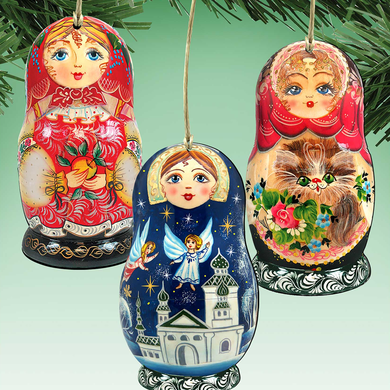 Story Dolls Wooden Ornaments Set of 3 by G. DeBrekht - Christmas Decor - 8100108S3