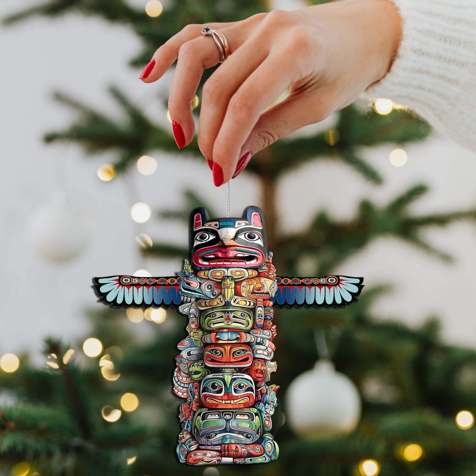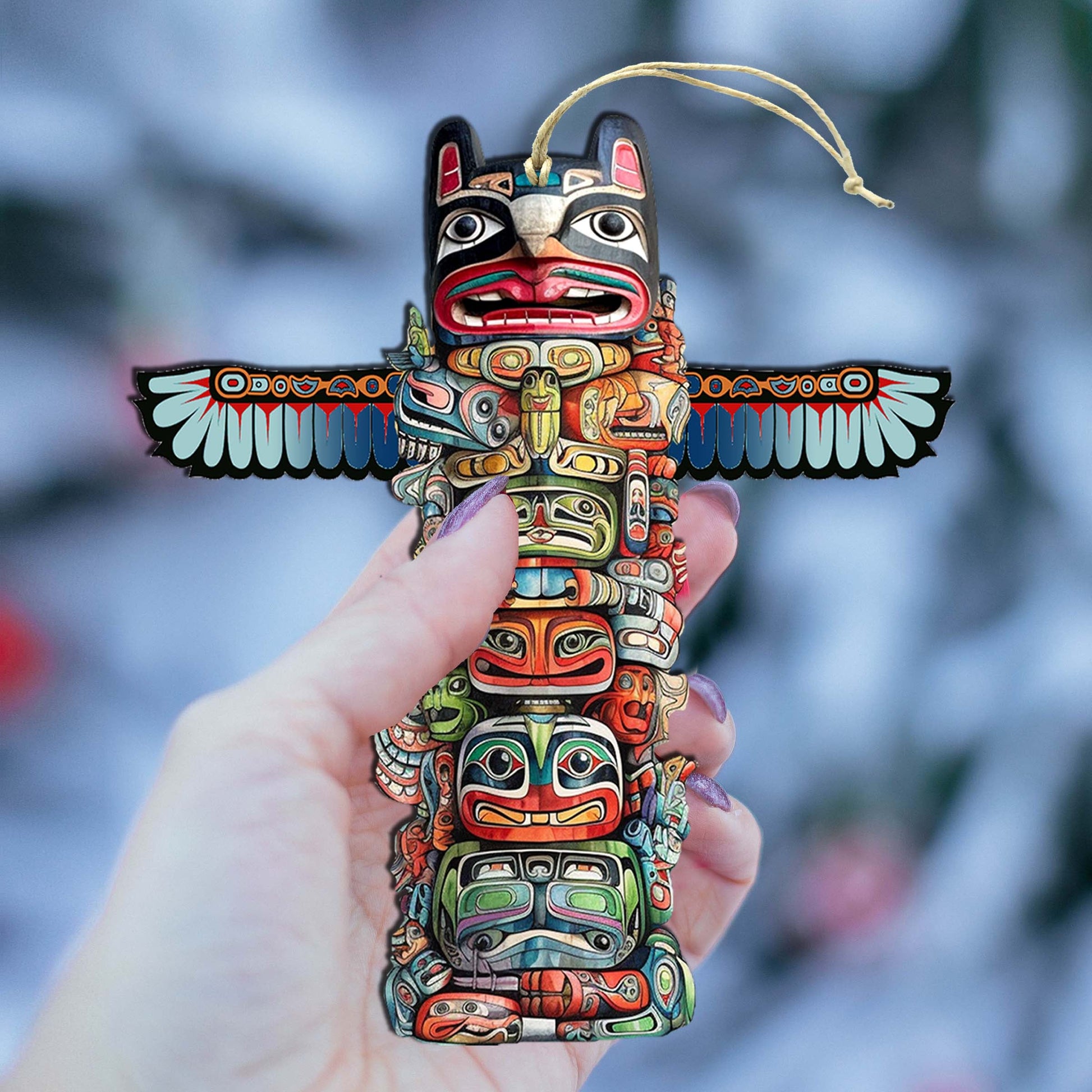 Symbolic Totem Pole Wooden Ornaments by G.Debrekht - Wildlife Holiday Décor - 8710117-2