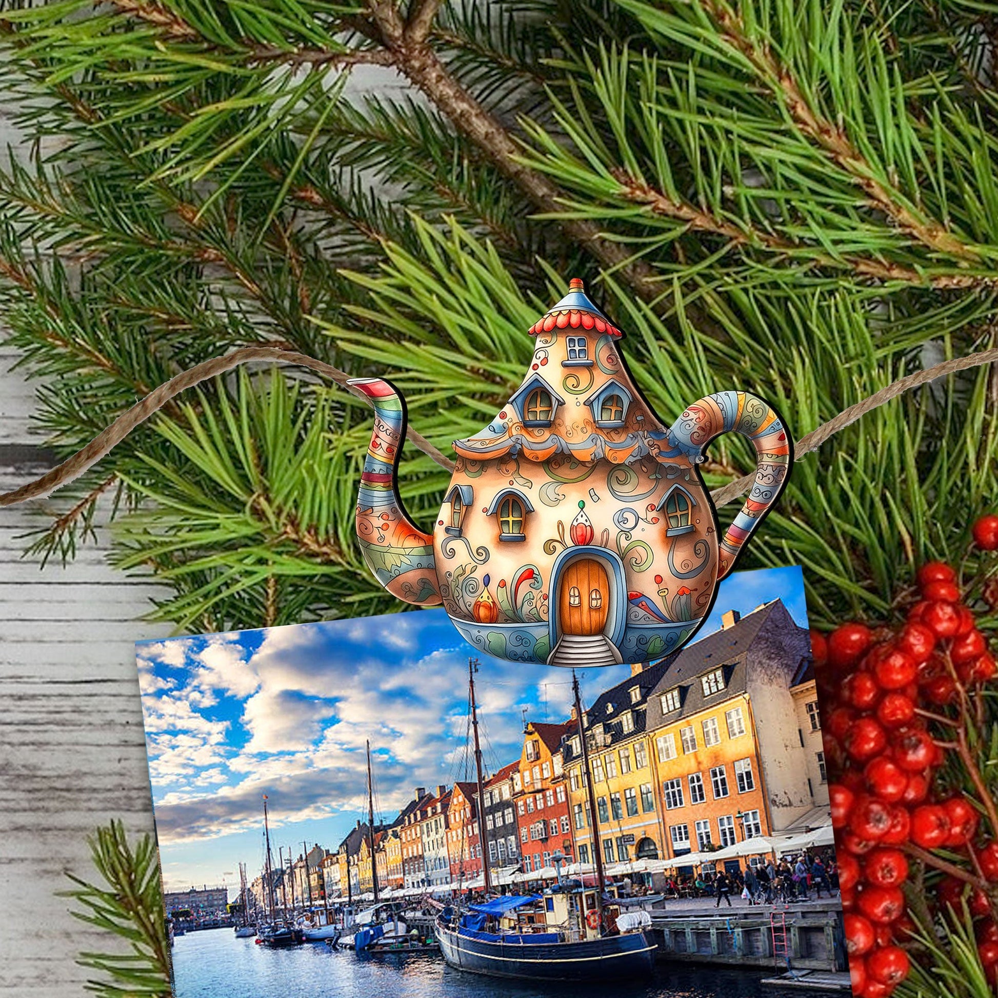 Teapots Decorative Wooden Clip-on Ornaments Set of 6 by G. Debrekht - Love Family Decor - 8090072C-S6