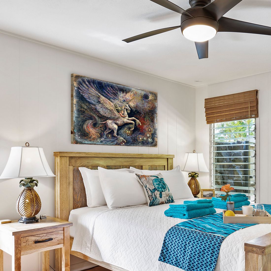 A stylish way to highlight your home is to showcase Distinctive Art designed by Josephine Wall. The natural wood grain shows through the Rustic Wall Art to give the Art a unique look. Visit us for wall art from the world greatest artists - Unicorn Pegasus Fantasy Under the Moon Art from our Home and Living collection, 100% in the USA.