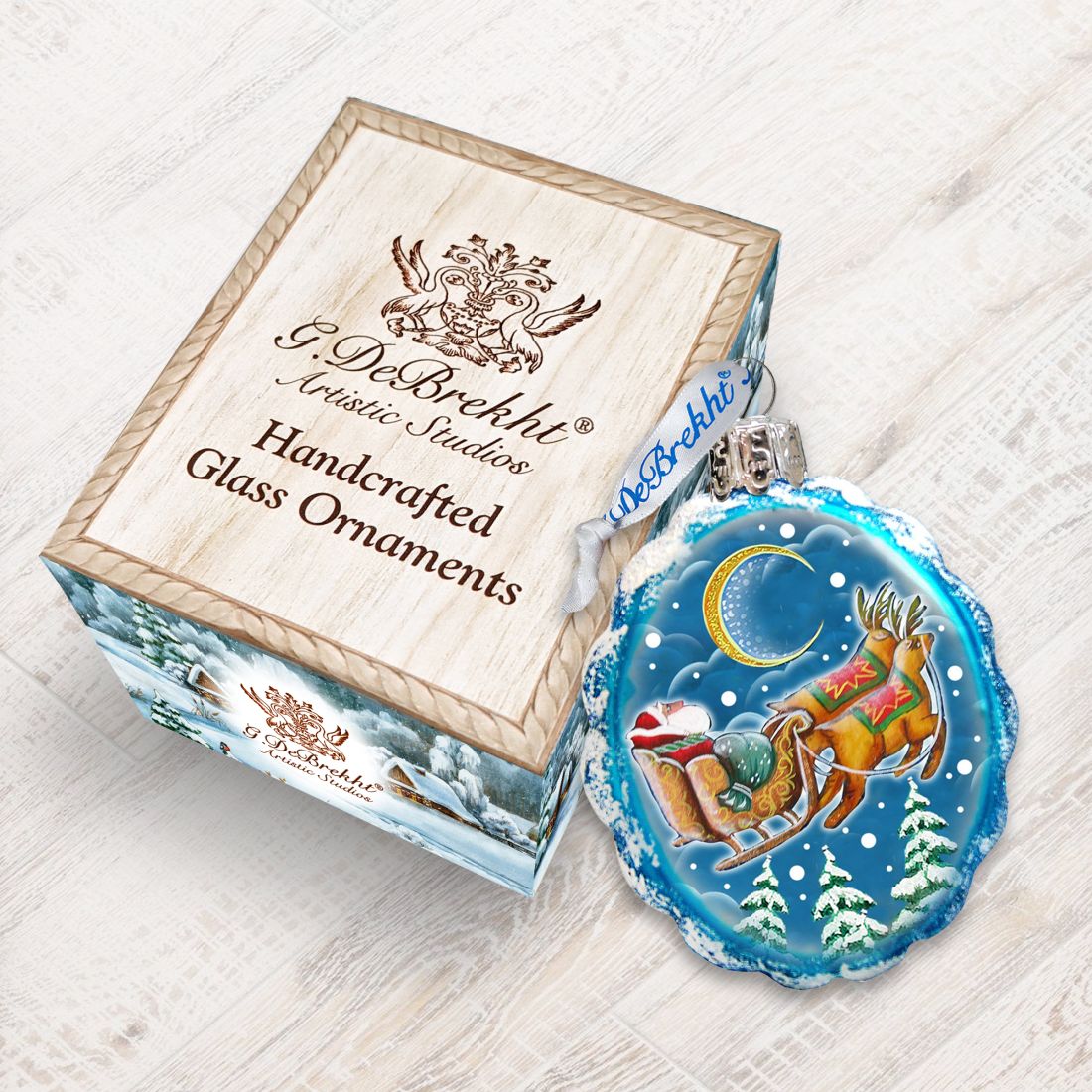 Looking for Reindeer and Sleigh, Winter Night hand-blown Elegant Glass Christmas Ornaments? Discover our exceptional small glass ornaments- delightful creations, handcrafted, painted, and Decorated by skilled artisans at G. Debrekht artistic Studio- handmade in the USA