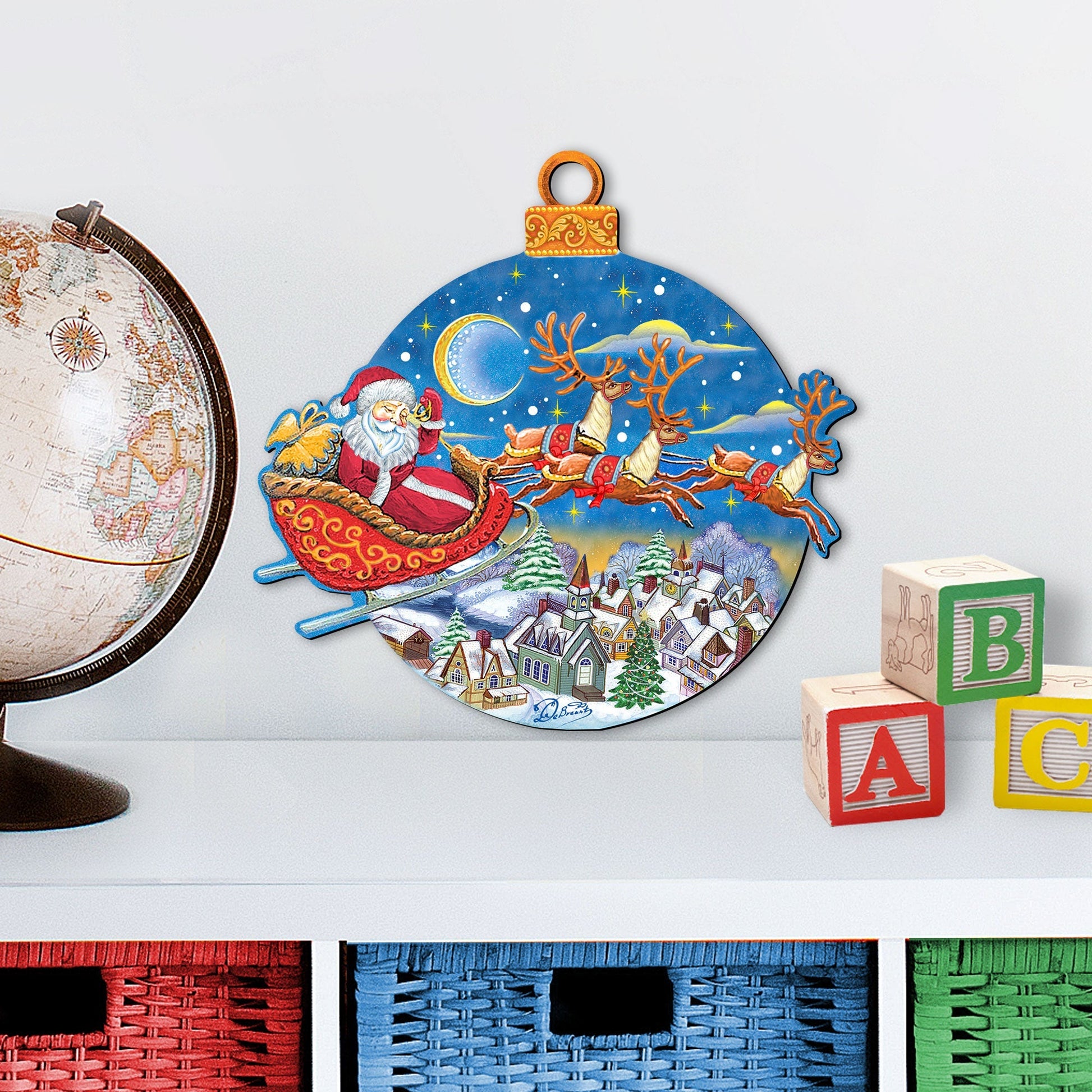 Up-Up and Away Santa Sleigh Ball Door Decor by G. DeBrekht - Christmas Santa Snowman Decor - 8112160H