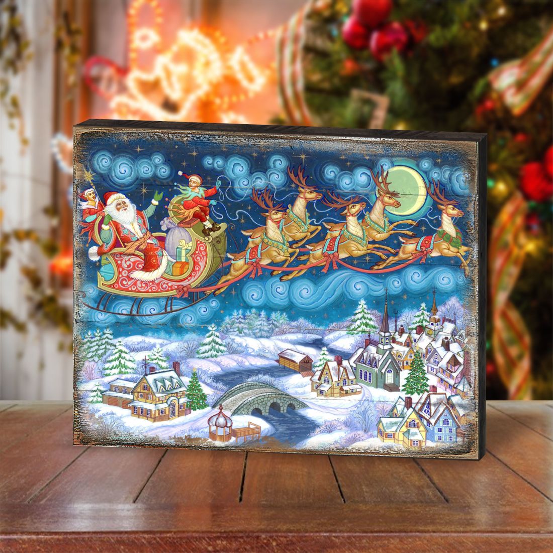Up-Up and Away Santa Wooden Wall Art by G. DeBrekht - Christmas Santa Snowman Decor - 8151062B