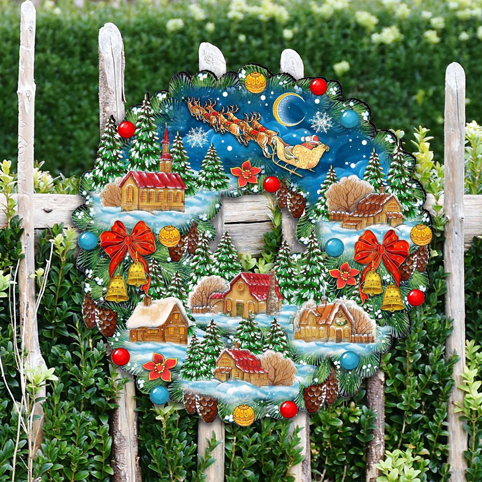 Up Up Wreath Christmas Door Decor by G. DeBrekht - Christmas Santa Snowman Decor - 8185315H