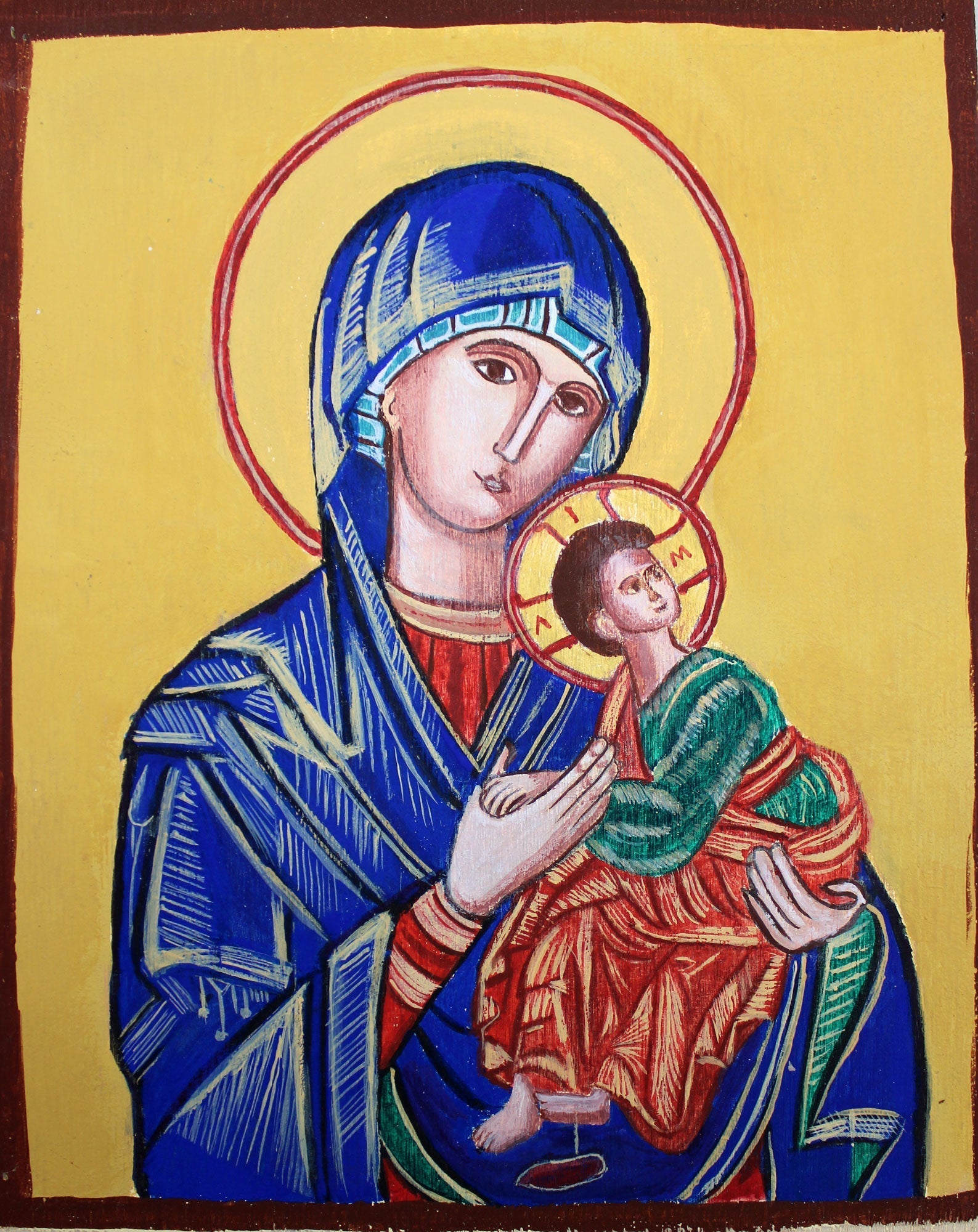 Virgin Mary Directress - Original One-of-a-Kind Handpainted Wooden Orthodox Icon 10 x 5.5" , Signed by G. DeBrekht with Certificate