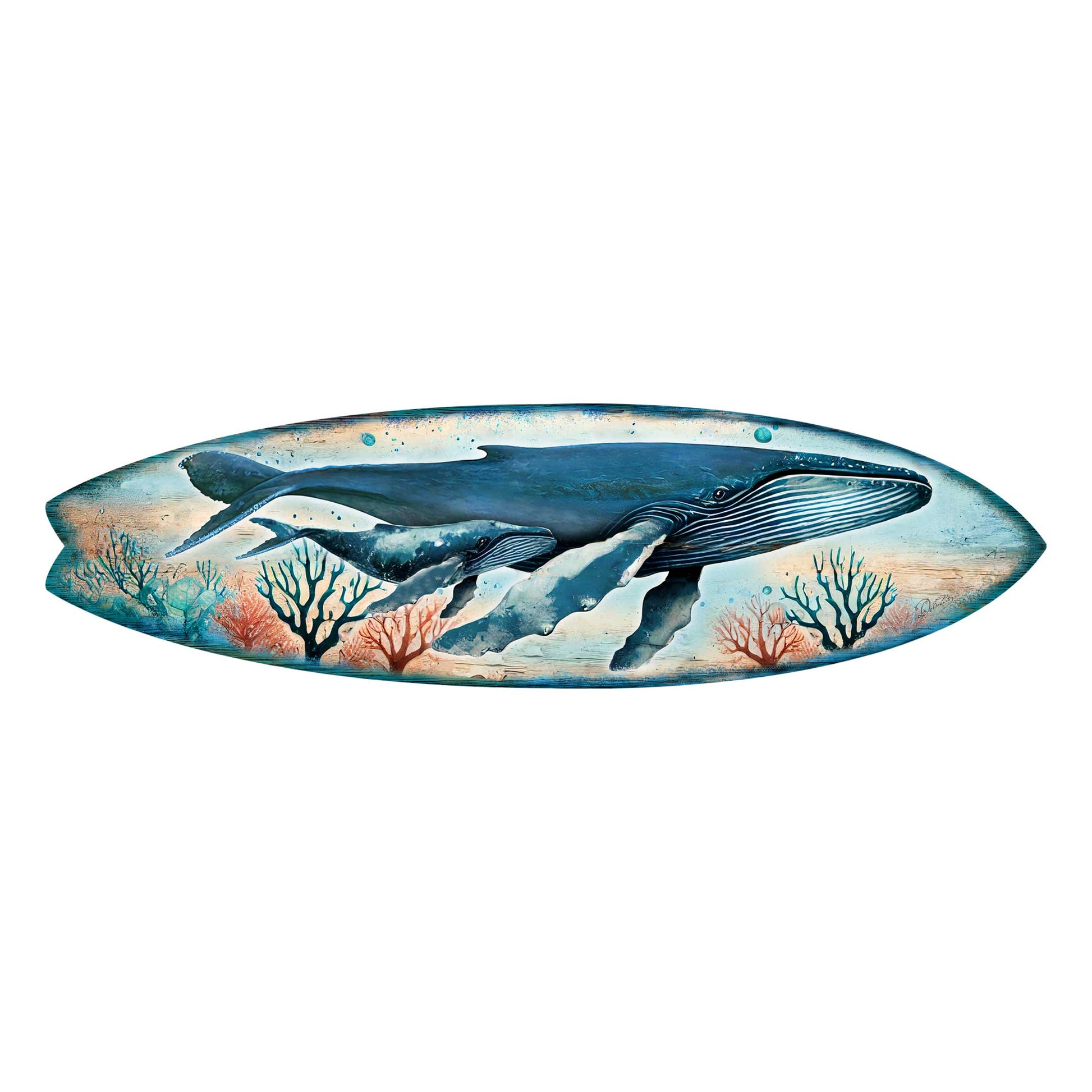 Whale Surfboard Wall Art – Handcrafted Coastal Ocean Decor by G.DeBrekht – Marine Life Beach House Accent for Indoor & Outdoor – 8490154HS