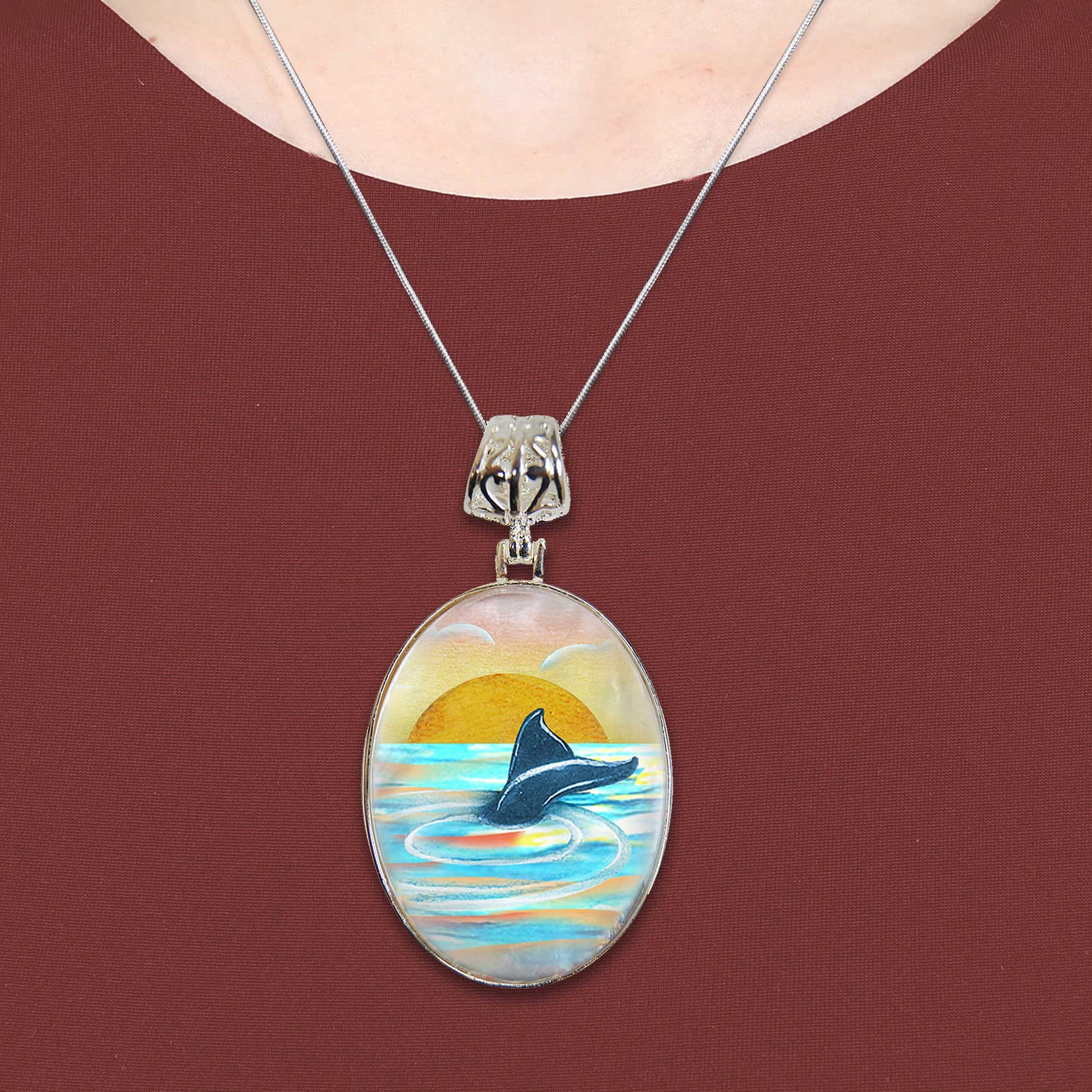 Whale Tale Silver Plated Mother of Pearl Jewelry Pendant Necklace Coastal - 44052