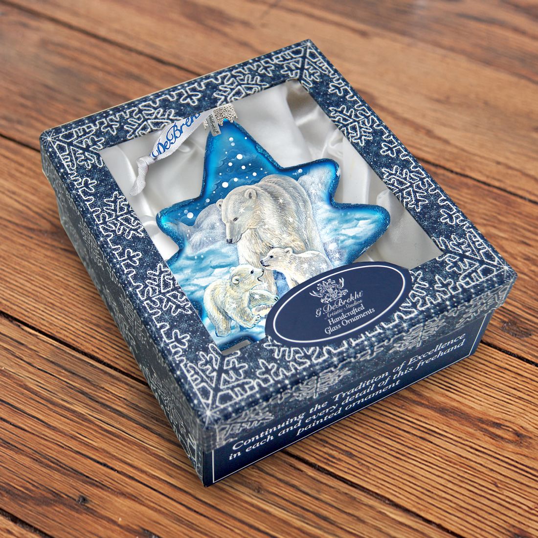 White Christmas Polar Bears North Star Glass Ornament by G. DeBrekht - Wildlife Holiday Decor - 755-012