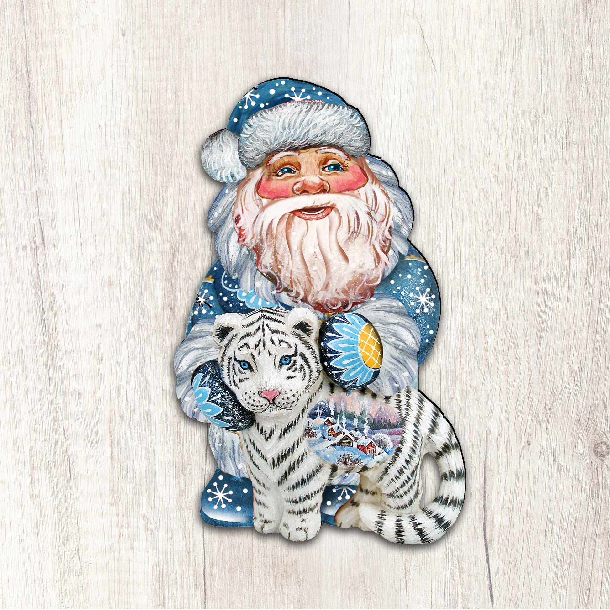 White Tiger Santa Christmas Door Decor by G. DeBrekht - Christmas Santa Snowman Decor - 8118091H